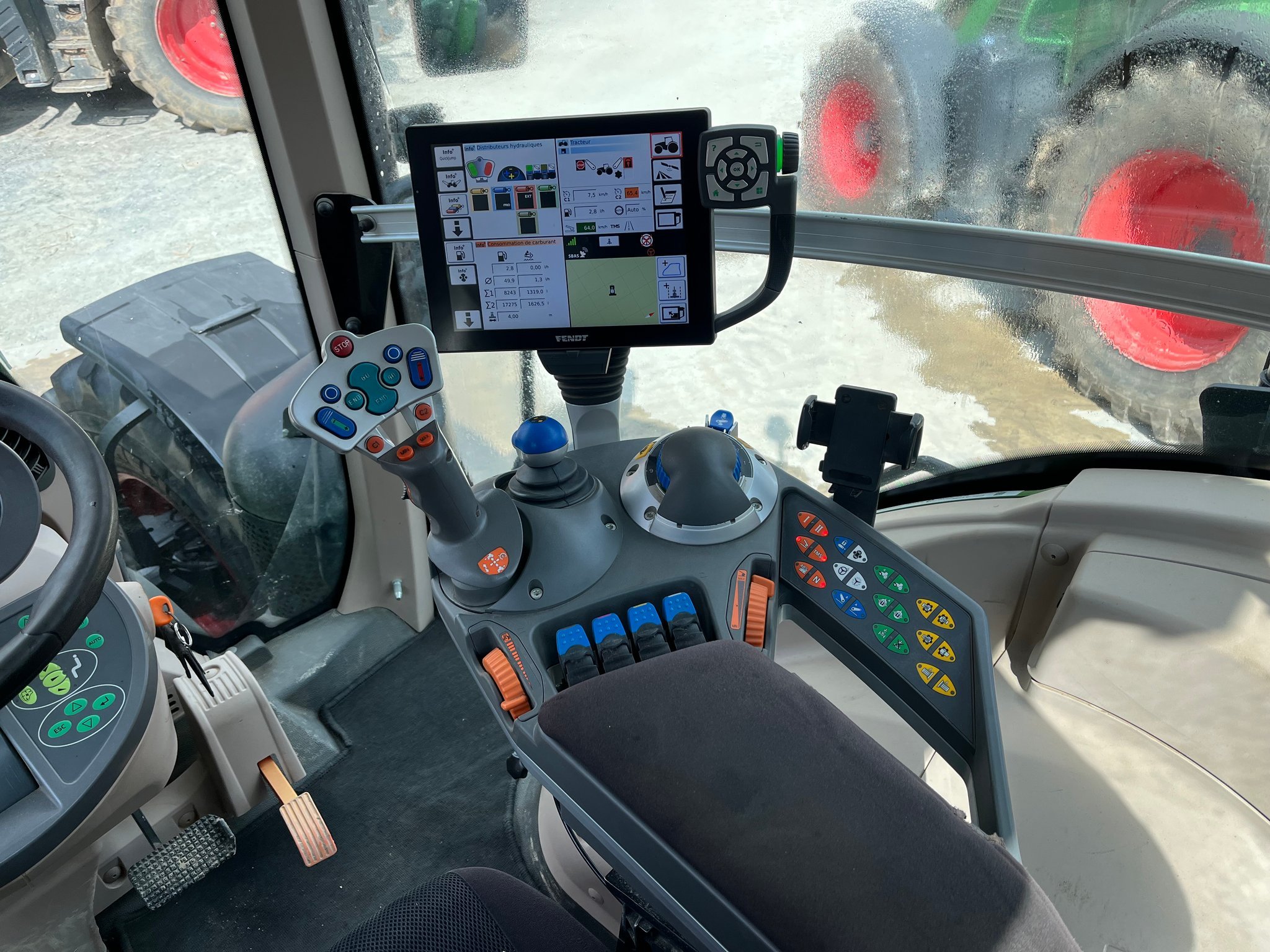 Tracteur FENDT 824 ProfiPlus - de 2021 - 3400 heures - pont avant et cabine suspendus - transmission à variation continue 50km/h - freinage mixte hydraulique et pneumatique - autoguidage TRIMBLE RTX - variogrip - 4DE hydraulique arrière - masses de roues - pneus 600/70R30 et 710/70R42