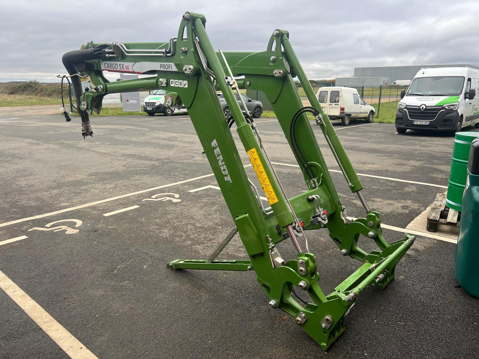Chargeur frontal rétractable FENDT CARGO 5X90 - de 2022 - à avec parallélogramme mécanique - pesée - actionnement d’outils hydrauliques avec cadre d'attelage rapide EURO, verrouillage automatique des outils, protection contre la rupture de tuyaux, clapets parachute intégrés - multi-coupleur hydraulique